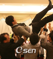 2008.05.24 18: 52헹가래 치는 T1 프로게임단, '최코치님 행복하세요'
