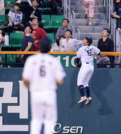 2008.06.07 19: 57김현수,'담장을 타고 올라갔지만'