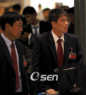2008.06.19 22: 27인공기 달고 서울에 온 북한 축구대표팀