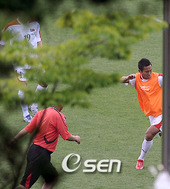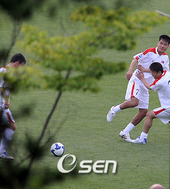 2008.06.20 19: 28비공개 훈련 중인 북한 대표팀