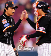 2008.06.22 20: 23최기문,'정훈아!! 9이닝 무실점! 정말 대단해!'