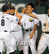 2008.06.26 22: 08정원석-김동주,'우리가 오늘 승리의 주역이지!'