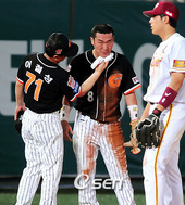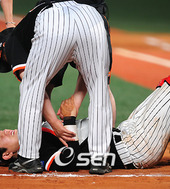 2008.07.09 23: 06[OSEN 베스트 포토]괴로워 하는 강민호