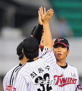 2008.07.13 20: 023연승을 거둔 LG의 하이파이브