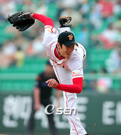 2008.07.22 19: 39릴리스 포인트가 많이 내려온 김광현의 투구