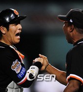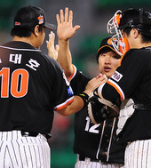 2008.07.30 21: 44김주찬,'원준아! 하이파이브 하자!'
