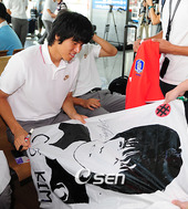 2008.08.03 14: 09축구화에 사인해 주는 김동진