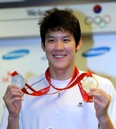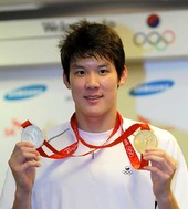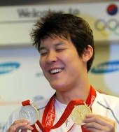 2008.08.12 15: 39박태환,'금메달 하나, 은메달 하나예요!'