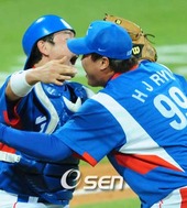 2008.08.15 22: 07뜨겁게 껴안는 이대호와 류현진