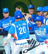 2008.08.17 00: 02동료들의 환영을 받는 김현수
