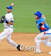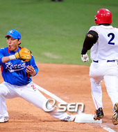 2008.08.23 20: 12원바운드 송구를 처리하는 이승엽, '수비도 척척'