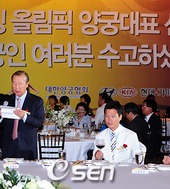 2008.08.28 20: 23'축사하는 정의선 대한양궁협회장'