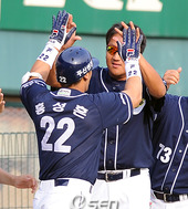 2008.08.30 17: 59홍성흔,'코치님 제가 스리런 홈런 날렸어요!'