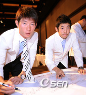 2008.09.01 13: 52강민호,'뭐라고 적을까?'
