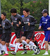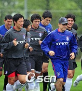 대표팀, 소집 첫날 빗속 훈련