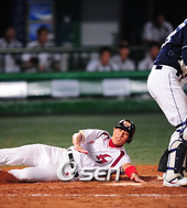 황재균,'슬라이딩을 하며 멋지게!'
