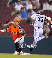 2008.09.09 20: 31김태균,'공이 먼저 도착했어요!'