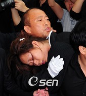 정선희, 장례식장서 실신