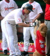 2008.09.14 18: 47볼견 미르와 하이파이브 하는 박재홍
