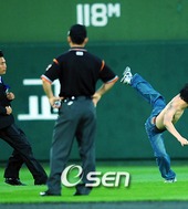 경기장 난입 관중,'비온다!'