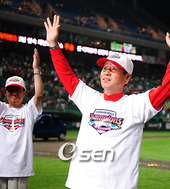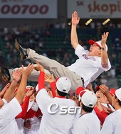 2008.09.21 20: 42헹가래 받는 김신배 구단주 대행