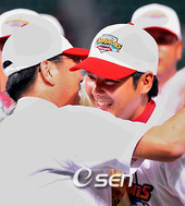 2008.09.21 20: 53구단주 대행과 포옹을 하는 김성근 감독