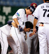 2008.09.23 19: 18사구에 맞아 괴로워 하는 고영민