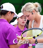 2008.09.24 15: 04키릴렌코, 이번에는 모자에 사인!