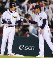 2008.09.26 19: 52홍성흔-고영민,'선취득점의 기쁨을 나누며'