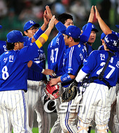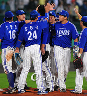 2008.10.08 21: 43승리의 기쁨을 나누는 삼성 선수들