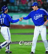 2008.10.08 21: 34양준혁,'화끈한 승리! 정말 행복해요'