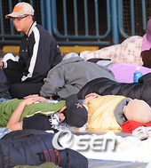 2008.10.08 07: 33'표를 구하기 위해 밤을 새는 야구팬들'