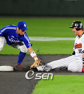 2008.10.08 20: 16김주찬,'1루에서 멈출걸 그랬나!'