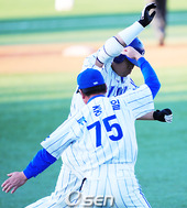 2008.10.11 17: 20양준혁-신명철,'동점 투런홈런의 기쁨을 나누며'