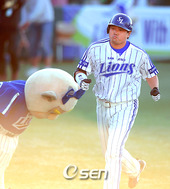 2008.10.11 17: 22양준혁,'마스코트와 홈런의 기쁨을 나누며'