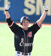 2008.10.11 16: 02동점 2루타를 치고 좋아하는 김주찬
