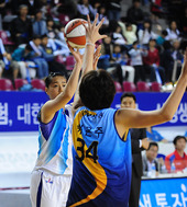 2008.10.13 17: 45홍보람, 뒤로 점프하며 슛!