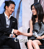 2008.10.13 12: 59김남길-추자현,'기자회견 중 악수를 나누며'