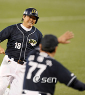 2008.10.20 18: 33확짝 웃으며 홈을 밟는 고영민