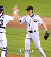 2008.10.23 23: 02승리의 하이파이브를 하는 이재우와 채상병