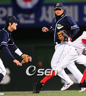2008.10.27 21: 02'런다운에 걸린 조동화'
