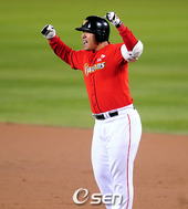 2008.10.29 19: 08선제 적시타를 치고 좋아하는 이재원