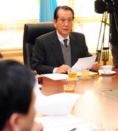 2008.11.19 10: 27이사회 문건을 검토하는 신상우 총재