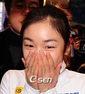 2008.12.09 04: 42혀를 깨문 김연아,'새벽인데 많이 나오셨네요'