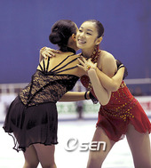 2008.12.13 21: 47밝은표정으로 아사다 마오를 축하해주는 김연아