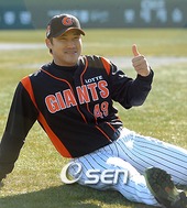2009.01.13 16: 39홍성흔,'유니폼 잘어울리지요!'