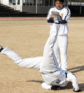 2009.02.08 13: 10유희관, "브레이크 댄스? 물구나무 실패!!"