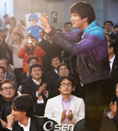 2009.02.13 14: 42소지섭,'의자에 올라서 인사!'