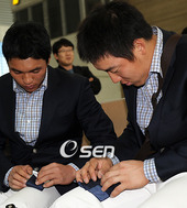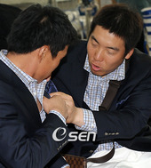 2009.02.15 18: 29김현수-이종욱,'행커치프 접느라 바빠요'