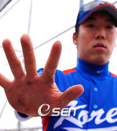 2009.02.18 09: 01굳은 살이 가득 박힌 김현수의 손